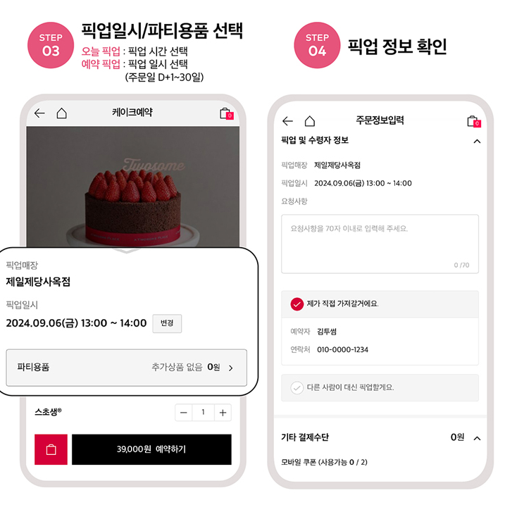 - 동일 상품 교환이 불가한 경우 다른 상품으로 교환이 가능합니다. (차액 발생 시 차액 지불) 만약 다른 상품으로 교환을 원치 않을 경우 매장에서 환불 요청 접수가 가능하며, 환불 요청 접수 시 카카오에서 쿠폰 수신자에게 환불 진행을 위한 알림톡을 발송합니다.
