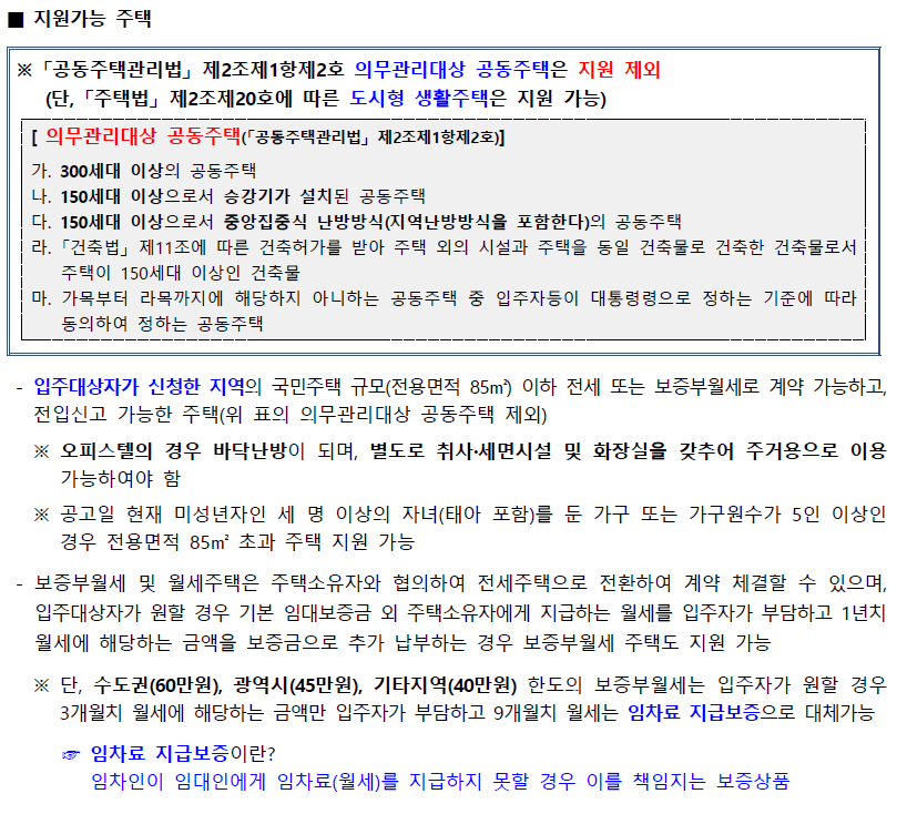 지원 대상은 무주택 세대 구성원인 경우에만 가능하며, 무주택 세대 구성원 중 아래의 조건을 만족해야 합니다!