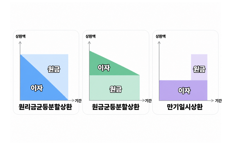대출은 어떻게 갚느냐에 따라 체감 부담이 크게 달라집니다. 대표적인 상환 방식은 세 가지입니다.