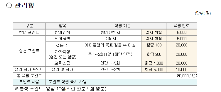 건강생활실천지원금은 총 2가지로 나뉘어 있습니다! 바로 예방형과 관리형인데요! 각 유형마다 지원 대상과 지원 금액이 다르니 꼭 꼭 확인하셔야 해요!