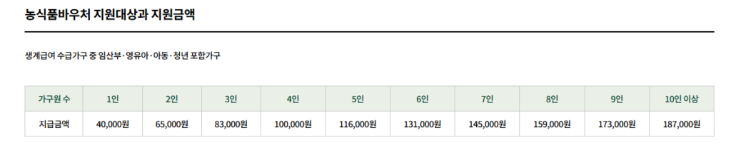 가구원 수에 따라 달라지는 농식품 바우처 지원금액