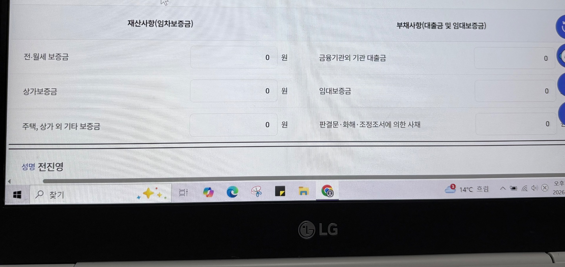 청년 월세지원 부모 자산이랑 부채 정확하게 입력해야하나요? 부채는 증명까지 해야하는 건지 궁금해요